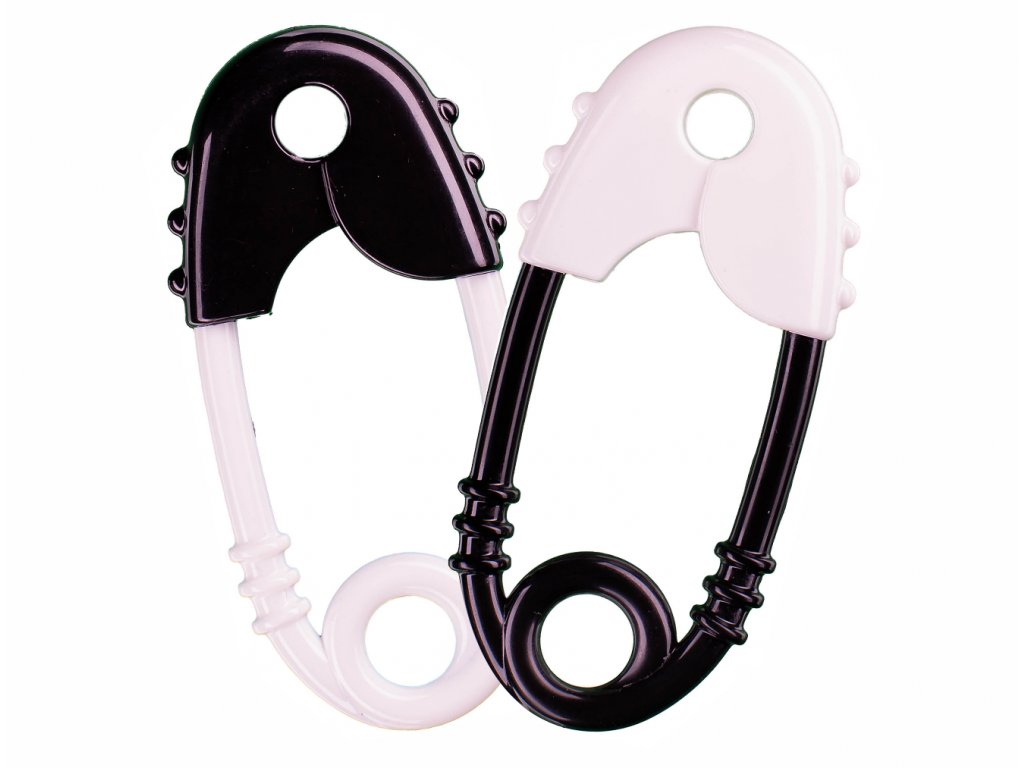 Dětmi milované chrastítko špendlík v kontrastní kombinaci černé a bílé stimuluje zrak dítěte a podporuje jeho rozvoj nyní i s daktylními prvky