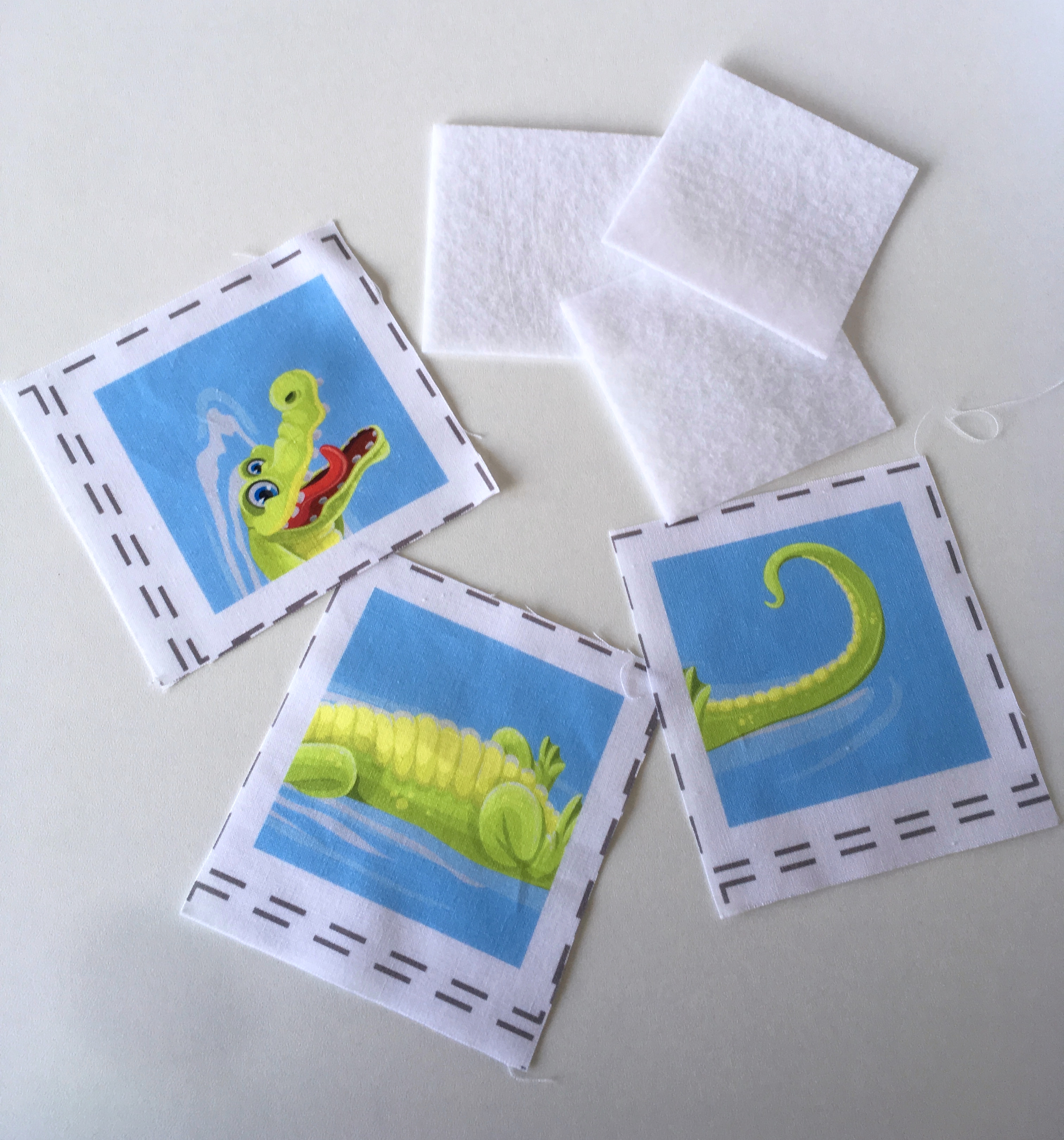 Vyztužené dílky necháme vychladnout a mezitím si nachystáme plátno, které bude na rubové straně puzzlíků (případně lze použít na rub také panel jiného puzzle a po ušití bude puzzle oboustranné.