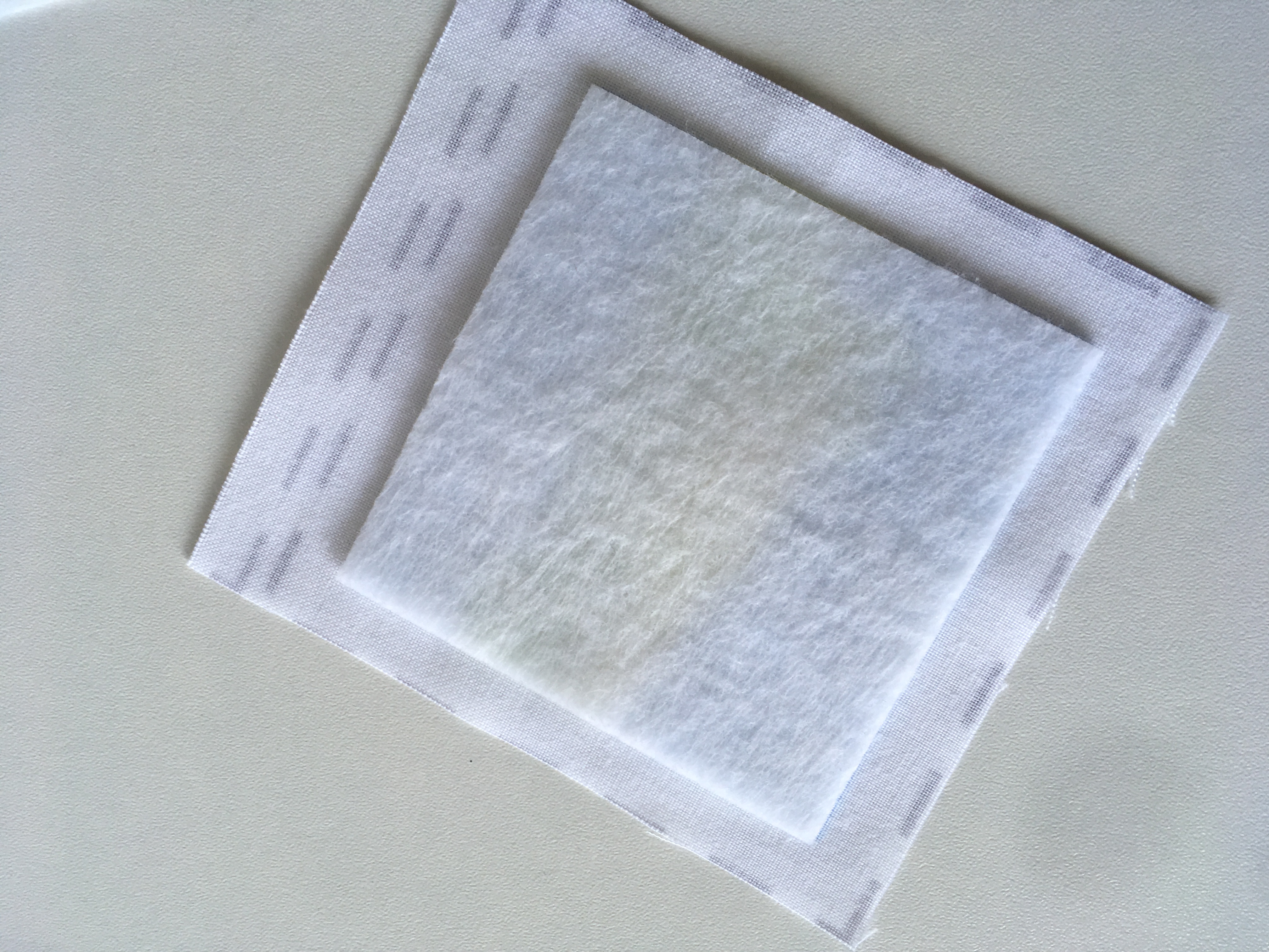 Takto nachystaný čtvereček zažehlíme dle návodu výrobce výztuhy. U ronofixu je doporučeno zažehlit na 95 - 120 °C pod tlakem 0,3 - 0,6 barů po dobu 10 - 15 sekund. Samozřejmě nejideálnějšího spojení docílíte pomocí žehlícího lisu, ale ten má doma málokdo.