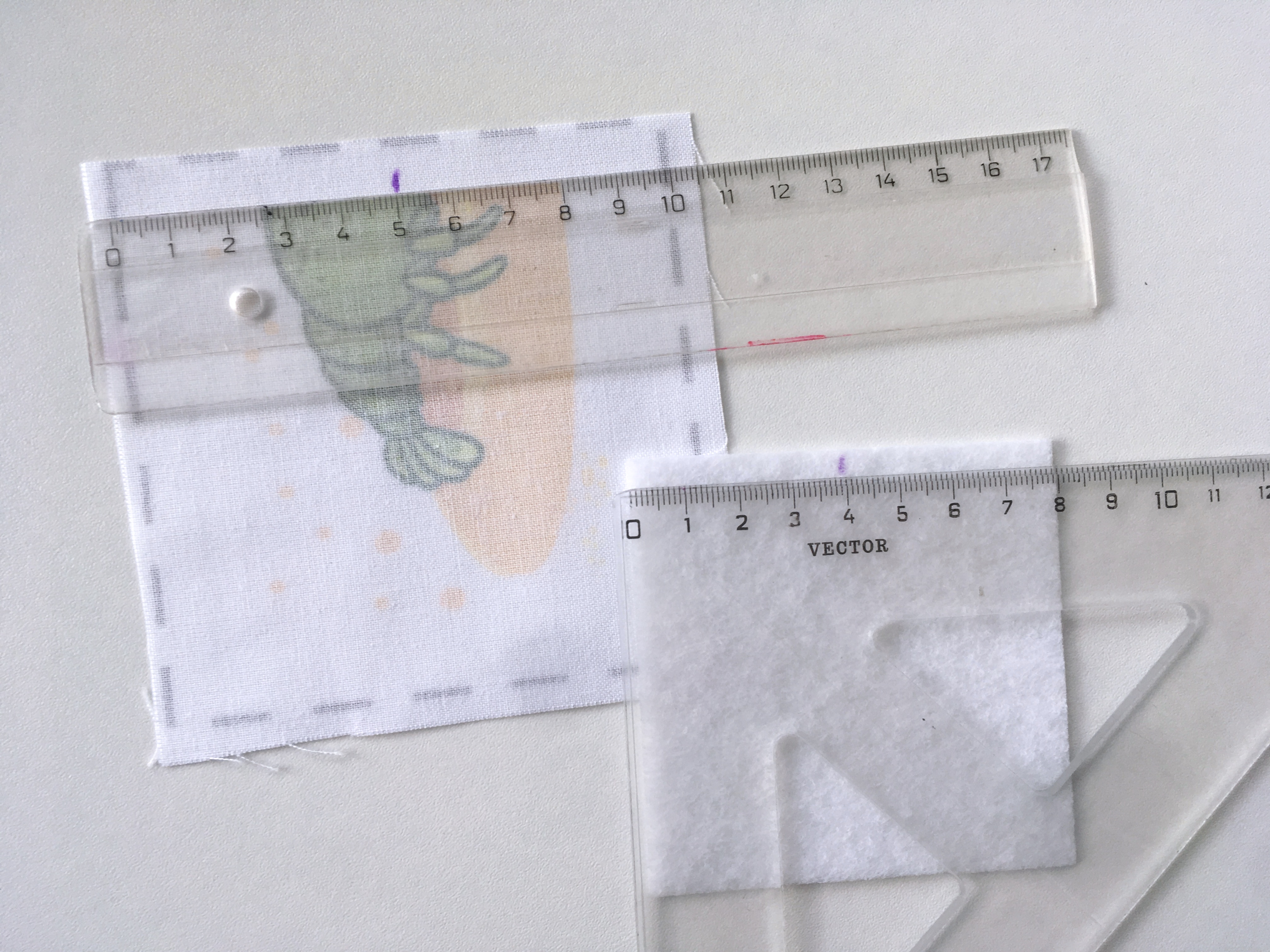 - Před zažehlením si zkontrolujeme, že mezi ronofixem a látkou nezůstaly žádné nitky ani smítka, mohly by prosvítat a budou se pak na látce rýsovat.