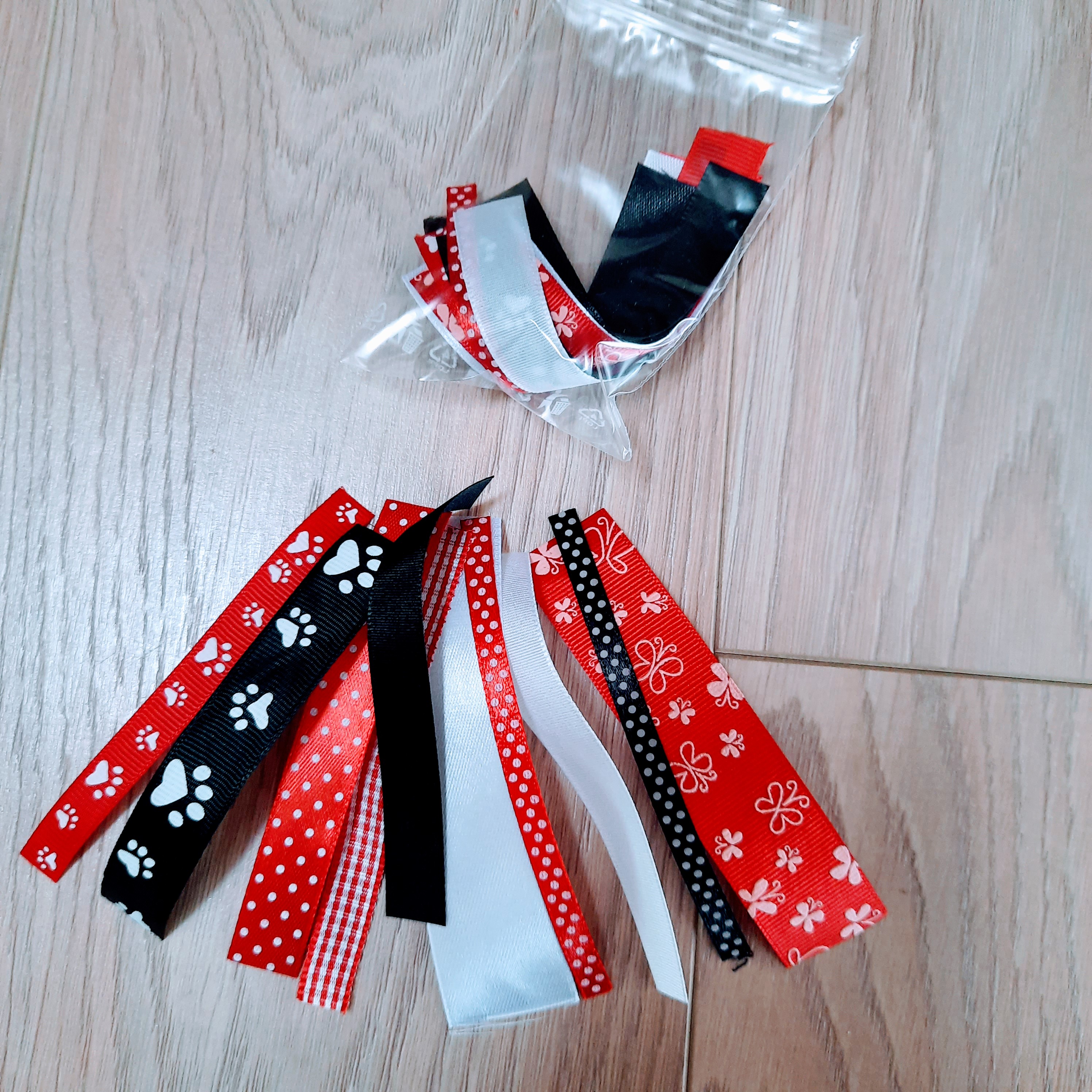 Mix obsahuje náhodné kombinace stužek dle skladové dostupnosti. Všechny budou v barvách černá, bílá, červená.