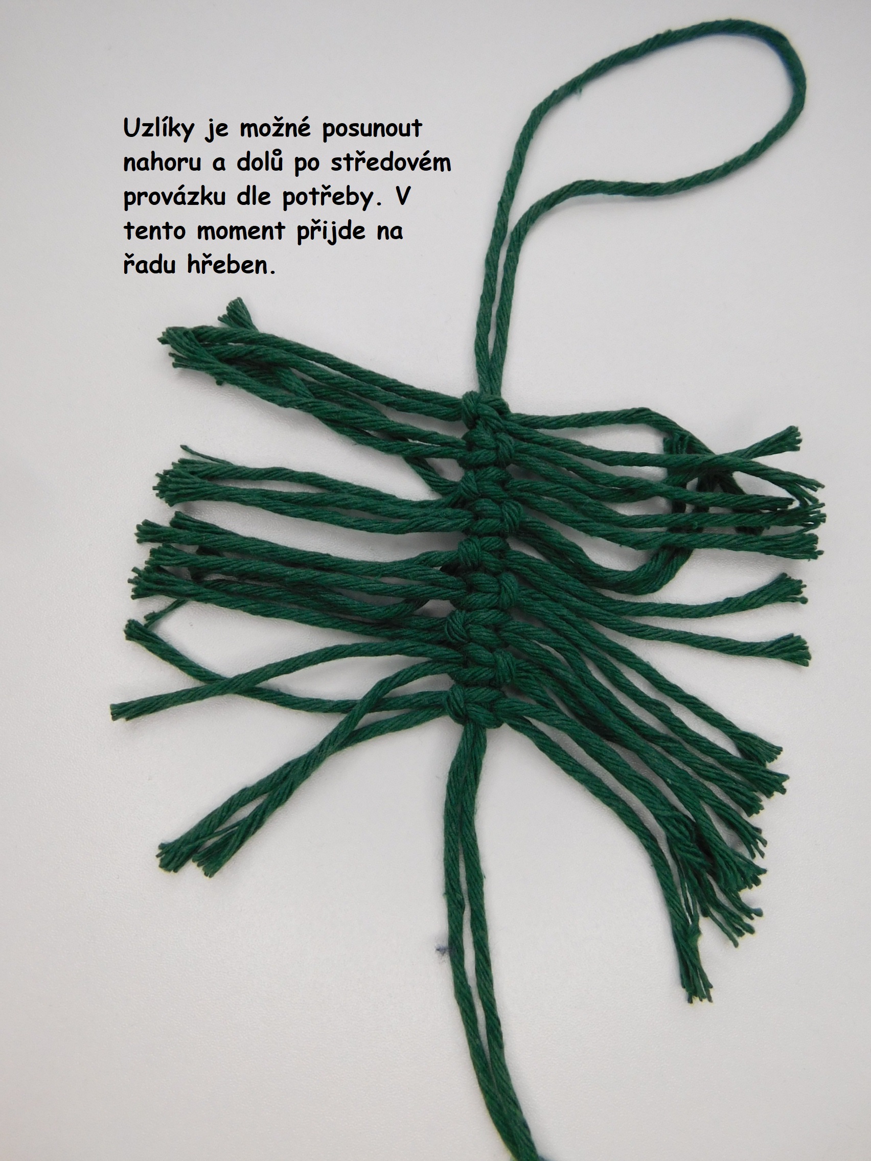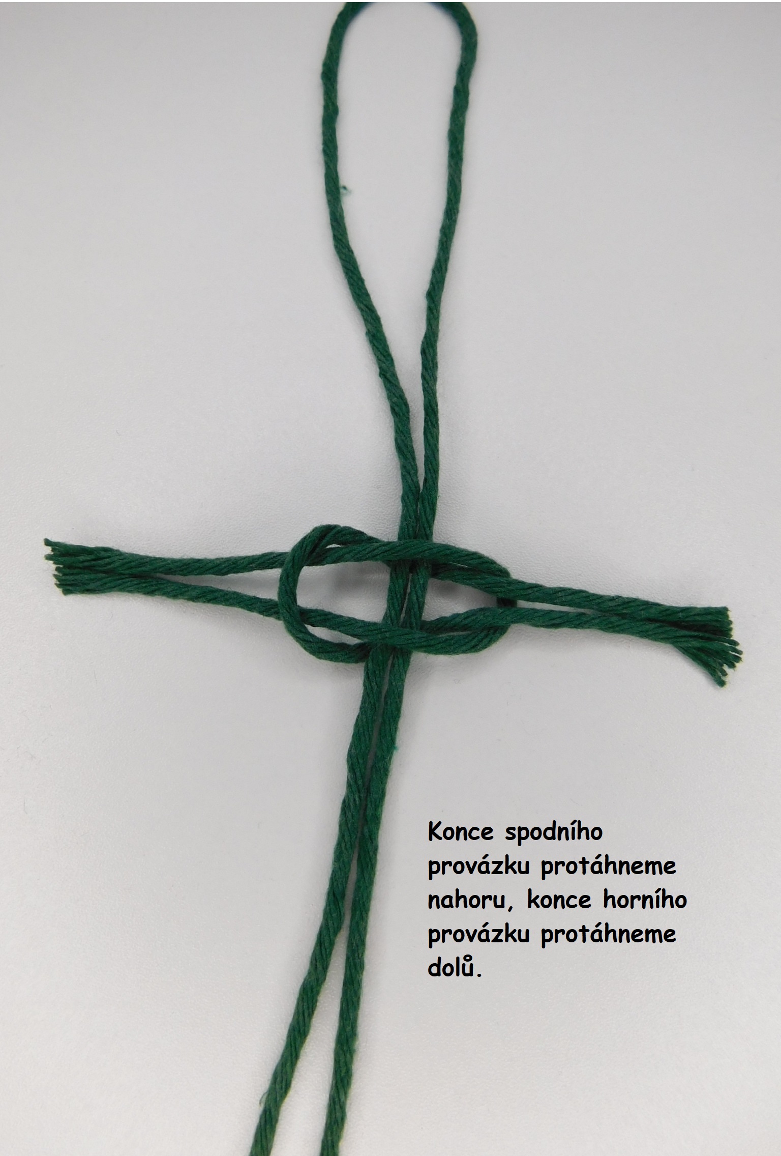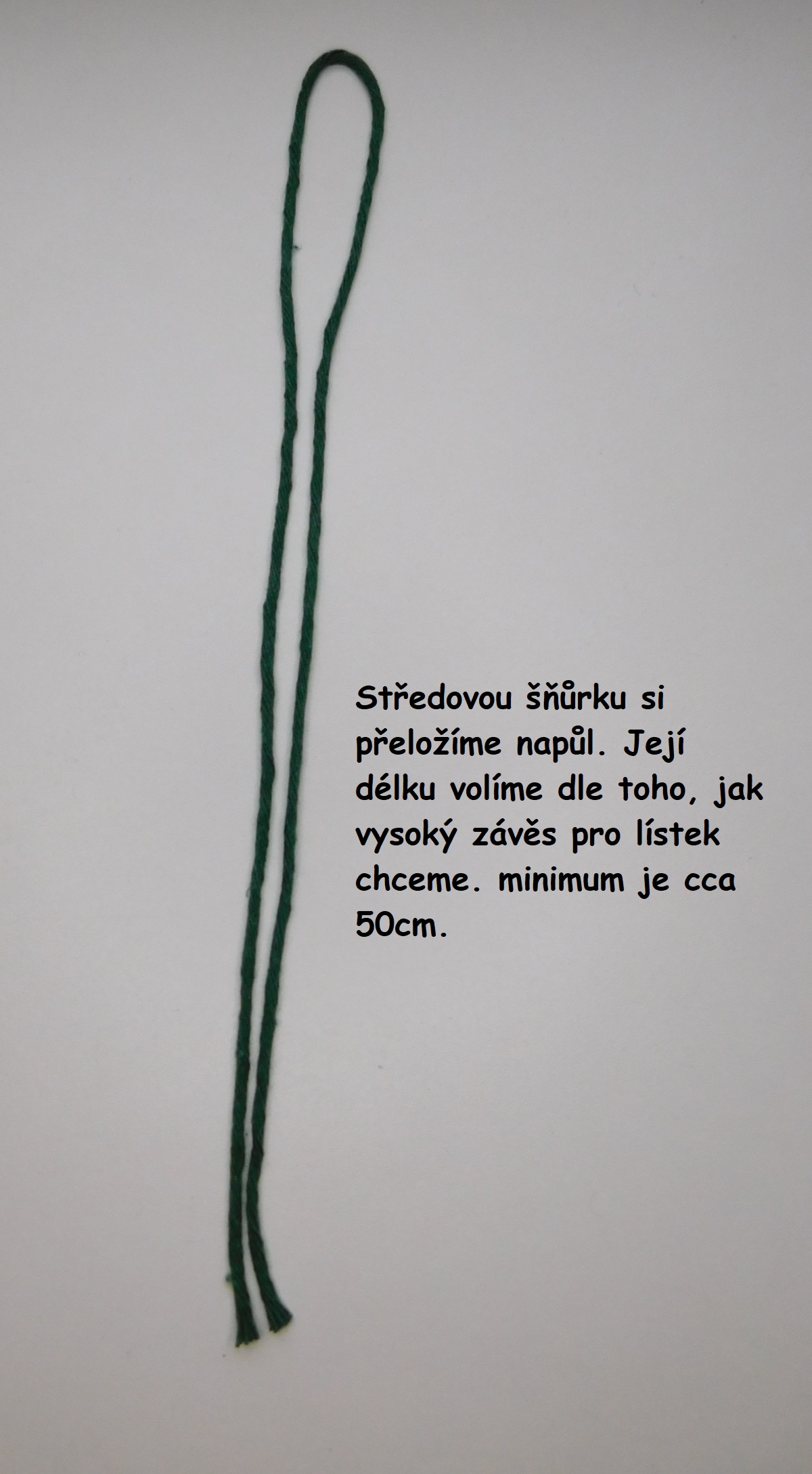 Provázek ze setu si rozstříháme. Na velký list potřebujeme 18x19cm, na malý list 18x15cm. Zbytek provázku je na střed, ke kterému budete provázky vázat - vyjde vám cca 80-90.
