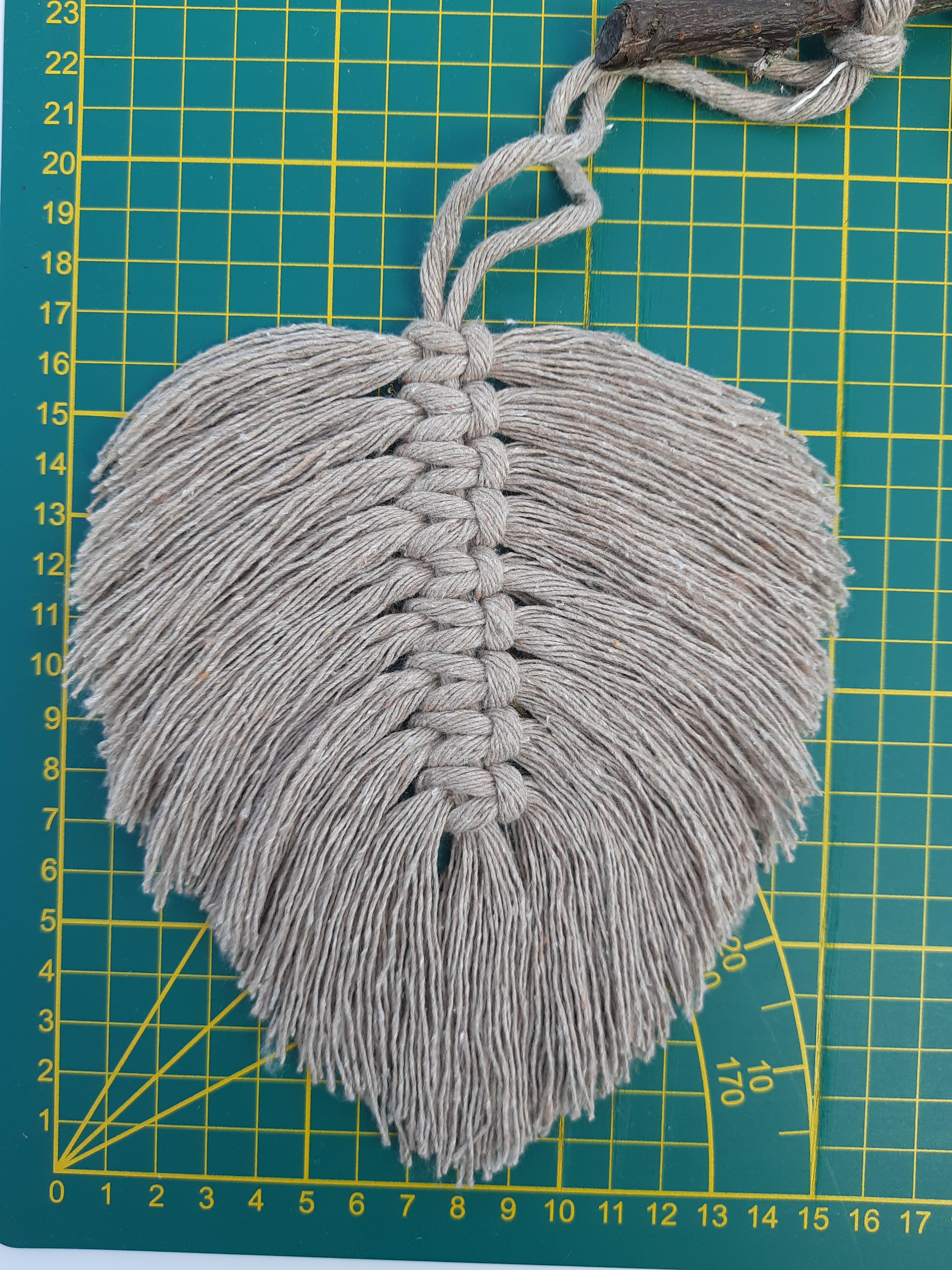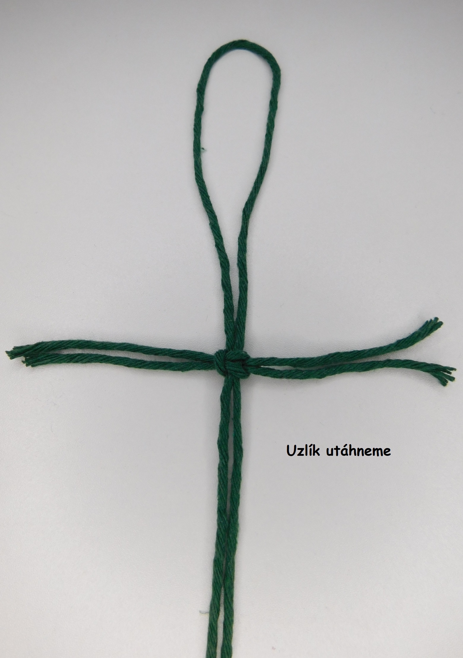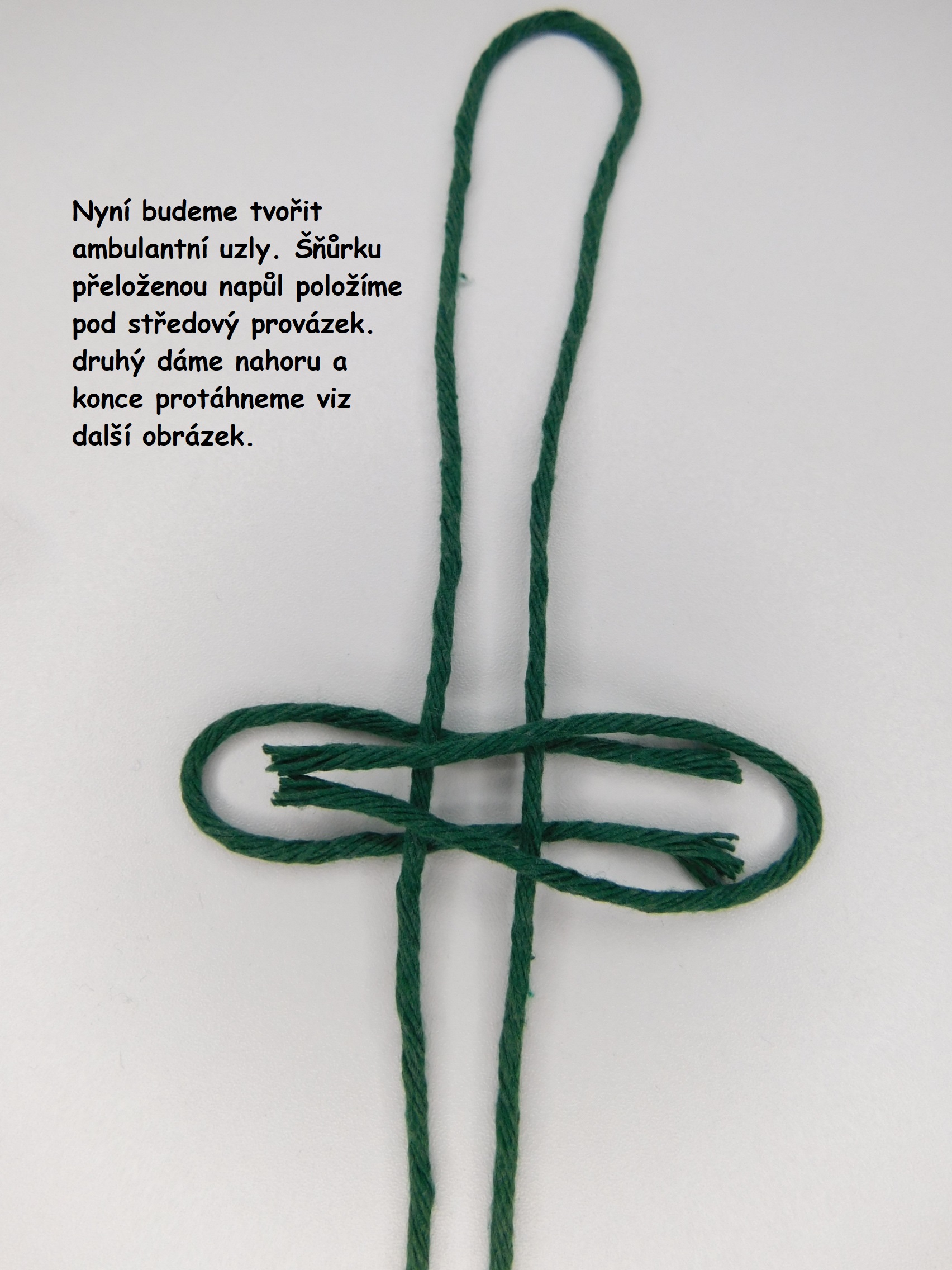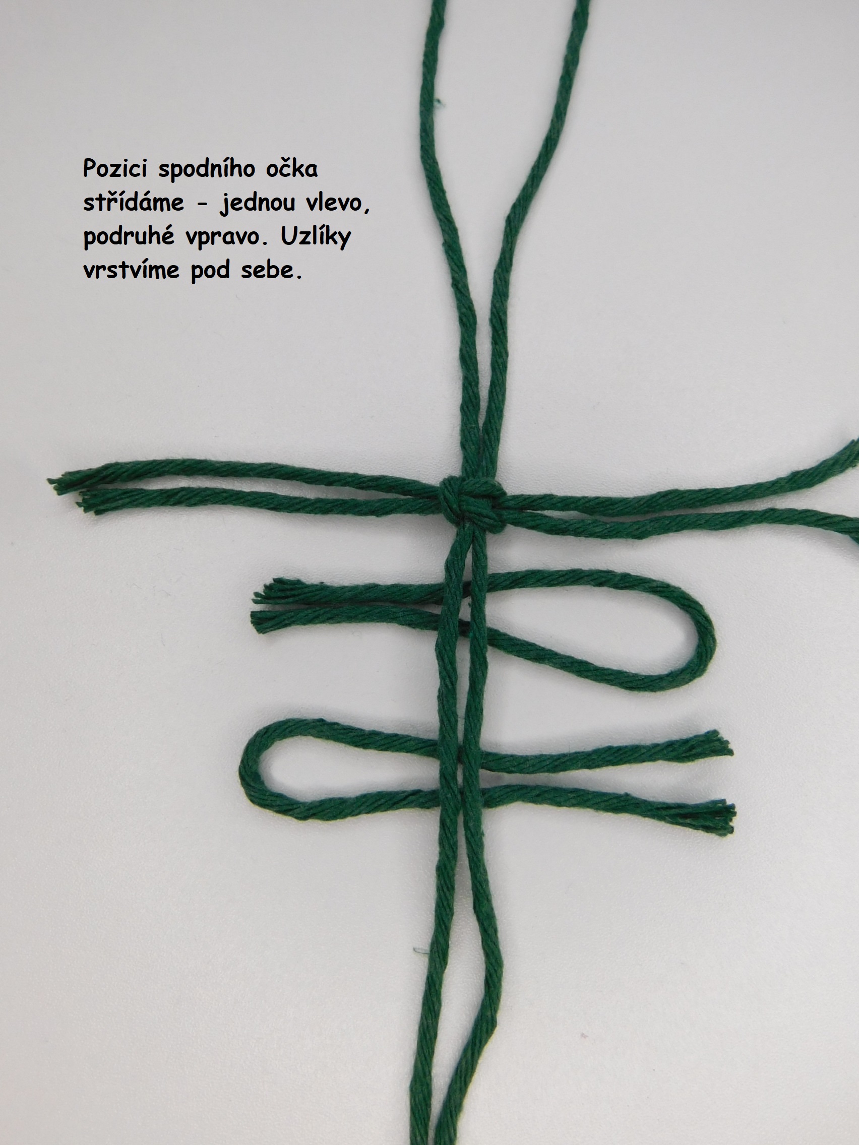 Provázek ze setu si rozstříháme. Na velký list potřebujeme 18x19cm, na malý list 18x15cm. Zbytek provázku je na střed, ke kterému budete provázky vázat - vyjde vám cca 80-90.