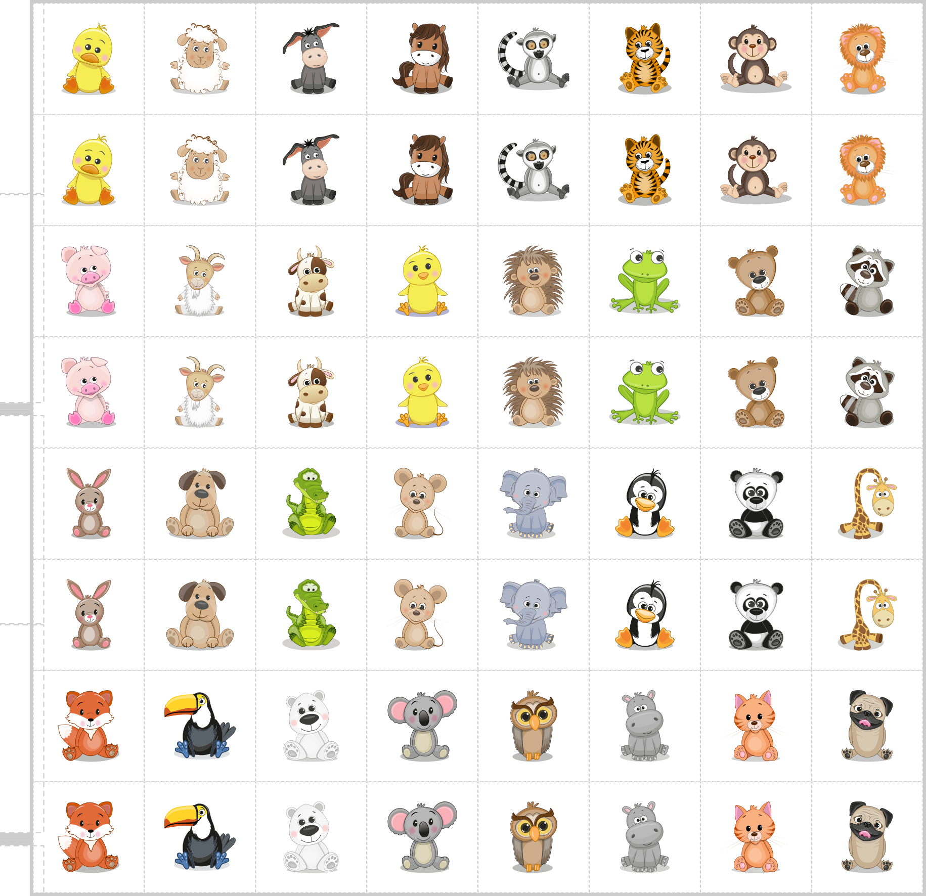 - Panel na pexeso Set roztomilých zvířátek na bílé