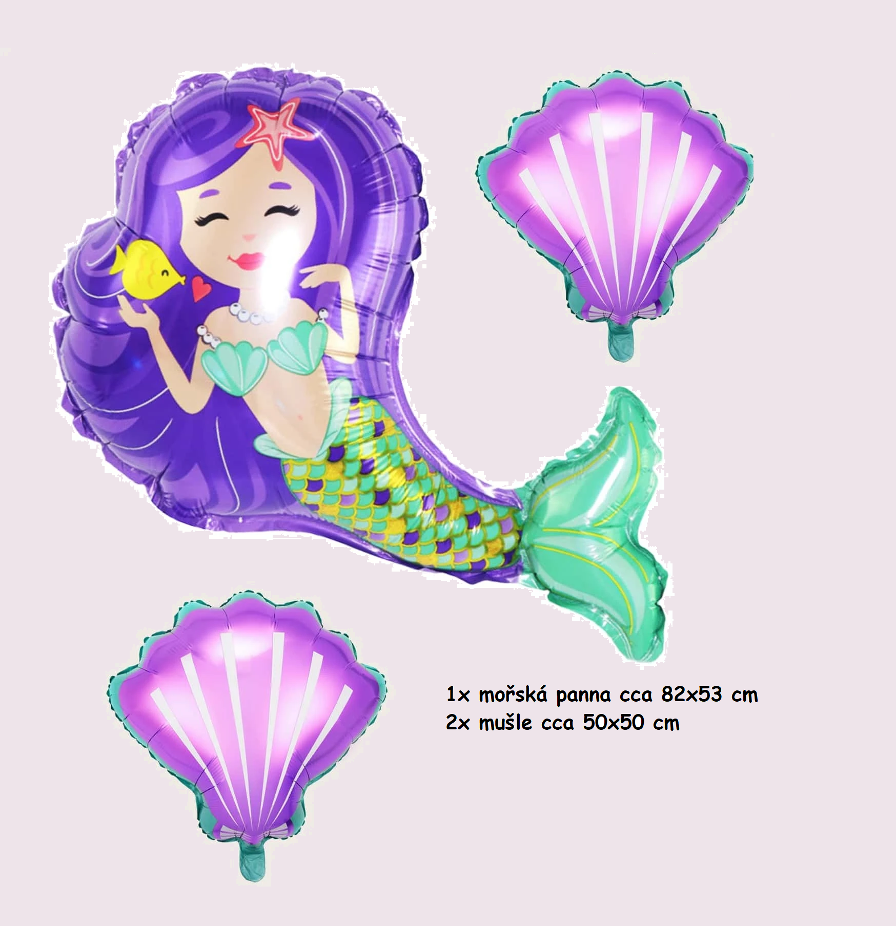 Rozměr nenafouknutého balónku mořské panny je cca 82 x 53 cm, mušle mají cca 50x50 cm.