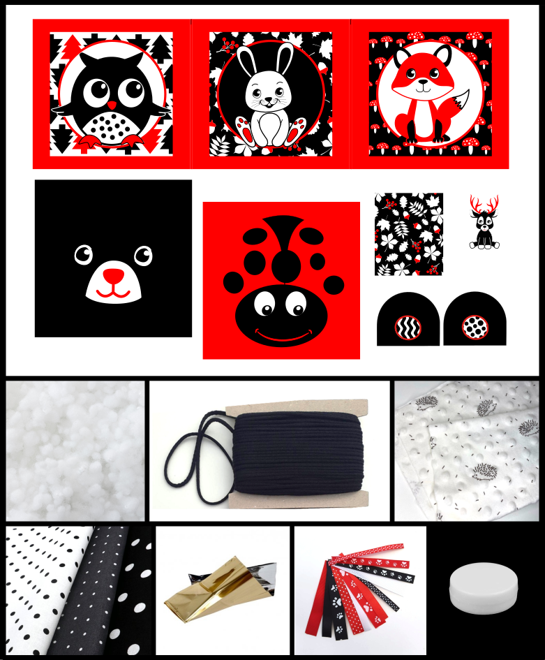 - Šustící fólie k dotvoření výrobku - lékárenský výrobek. Při zmáčknutí fólie způsobí šustivý zvuk. Rozměr cca 18x18 cm