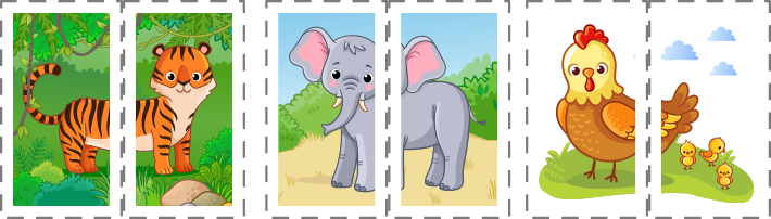 - SET Puzzle 2 dílky 3 ks - slepice, tygr a slon