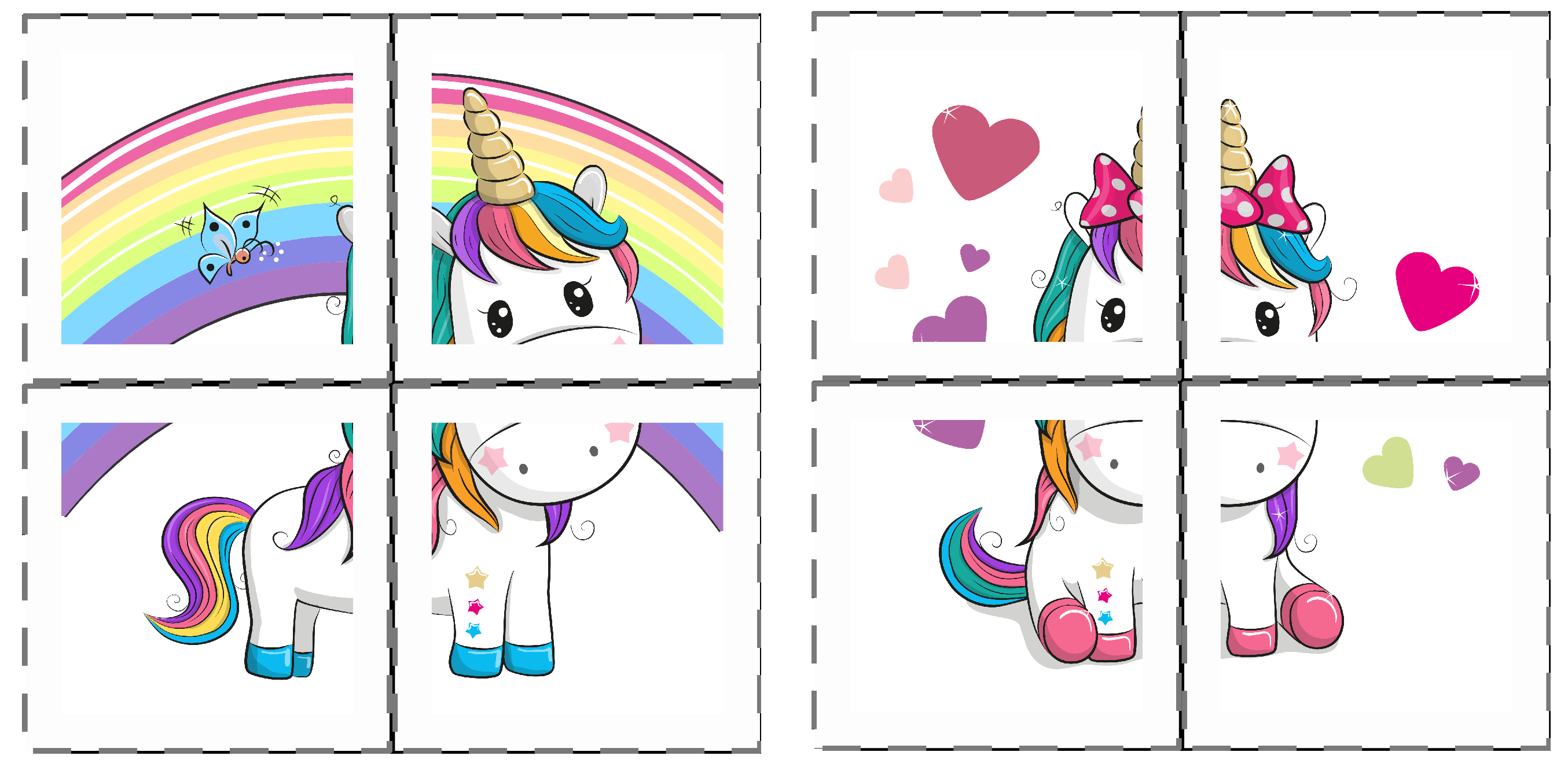 SET Puzzle 4 dílky 2 ks - jednorožci