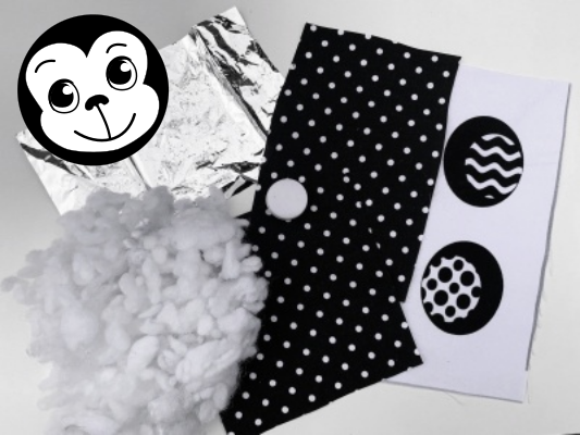Plátno s černobílým vzorem v rozměru tak, aby sloužil jako zadní strana obličeje i oušek, Materiál: 100% Bavlněné plátno Vzor plátna se může lišit od fotografie, vždy bude dodáno plátno z aktuálních skladových zásob. Bude s černobílým vzorem (puntíky, čtyřlístky, vlnky, hvězdičky apod.)
