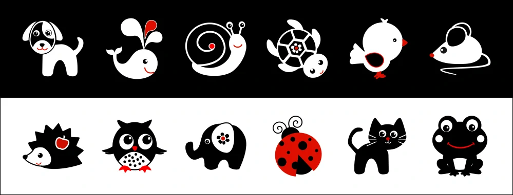 1 ks leporelo čumáčky na černé o rozměru cca 62x12 cm, čtvereček leporela má cca 10cm. Materiál: 100% Bavlněné plátno