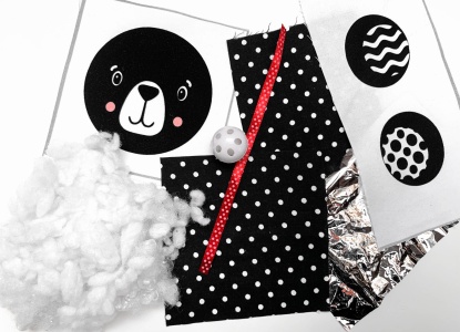 Plátno s černobílým vzorem v rozměru tak, aby sloužil jako zadní strana obličeje i oušek, Materiál: 100% Bavlněné plátno Vzor plátna se může lišit od fotografie, vždy bude dodáno plátno z aktuálních skladových zásob. Bude s černobílým vzorem (puntíky, čtyřlístky, vlnky, hvězdičky apod.)